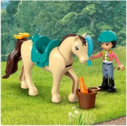 Ce set coloré est idéal pour les petits constructeurs dès 4 ans. Grâce à la Brique de démarrage, la construction est rapide et facile, pour que les enfants puissent vite jouer avec la voiture tractrice et la remorque, deux mini-poupées et deux chevaux. En forêt, un tronc tombé sert d’obstacle de saut, et une riche panoplie d’accessoires permet de s’occuper des chevaux.