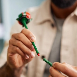 Détendez-vous en assemblant le bouquet LEGO, qui vous apportera joie et un bel élément décoratif pour votre intérieur. Le set contient une douzaine de roses rouges - quatre complètement épanouies, quatre en pleine floraison et quatre boutons avec de longues tiges vertes. Le tout est complété par quatre branches de gypsophile avec de petites fleurs blanches. Ce bouquet élégant peut être merveilleusement combiné avec d'autres ensembles de la collection botanique LEGO.