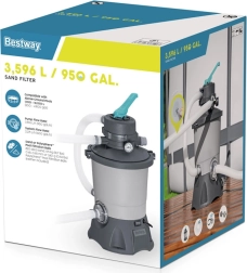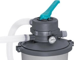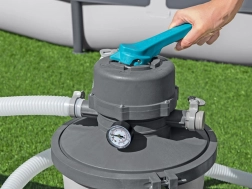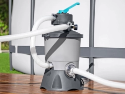 La filtration à sable d’une capacité de 3596 litres par heure assure une eau propre rapidement et efficacement.