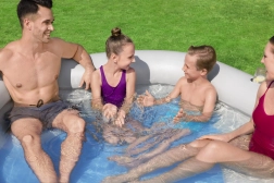 Gonflage rapide, 2 porte-gobelets et une valve de vidange facilement accessible pour un entretien aisé après la baignade.