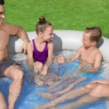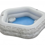 Deux coussins gonflables intégrés, profilés pour soutenir la tête, transforment la piscine en zone de relaxation pour toute la famille.