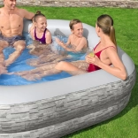 Compacte et d’angle, cette piscine au motif effet pierre s’intègre parfaitement sur la terrasse comme au jardin. Le PVC durable et les parois épaisses assurent une longue durée de vie, tandis que le large bord supérieur souple invite à s’asseoir confortablement et à se rafraîchir lors des journées chaudes. Grâce à la valve de vidange pratique, vous videz facilement la piscine après usage.