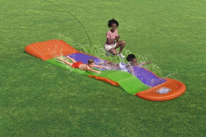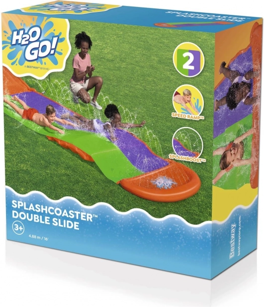 Le toboggan SplashCoaster de la marque Bestway apporte l’amusement directement dans votre jardin ! Grâce à sa double voie de 4,88 mètres de long, il est parfait pour les courses et les jeux en groupe. Les gicleurs d’eau assurent une glisse fluide et rapide.