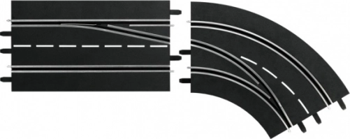 Vous voulez dépasser vos adversaires avec aisance même dans les sections difficiles ? Cet élément spécial pour circuits Digital 132 et Digital 124 permet un changement de voie directement dans le virage. Il s’active avec le bouton avant de la manette de vitesse (30340), qui actionne l’aiguillage et assure un dépassement intérieur fluide, sûr et amusant.