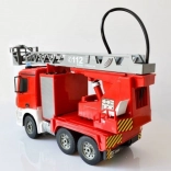 Grand camion de pompiers sous licence, télécommandé à l’échelle 1:20, qui ravira les petits comme les grands fans des secours. Il offre un éclairage LED réaliste, une pompe à eau fonctionnelle avec réservoir intégré, une plateforme/échelle rotative et extensible et des roues en caoutchouc avec transmission 4x4. La radiocommande ergonomique 2,4 GHz à joysticks assure un pilotage fluide, avec klaxon, sirènes et bouton de démarrage.