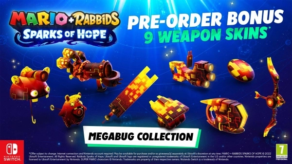 Remarque : Certains contenus nécessitent une connexion Internet et un compte Nintendo. Le contenu du Season Pass sera disponible après sa sortie. Offre sujette à modification. Bonus de précommande : pack Megabug avec 9 skins d’armes pour tous les membres de l’équipe.