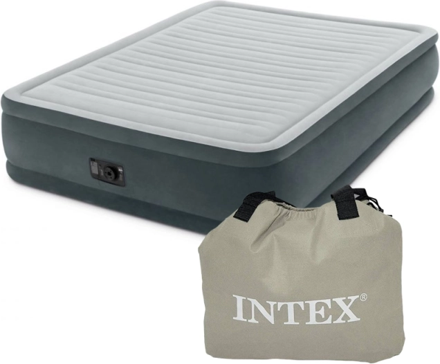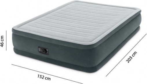 Le matelas gonflable Intex (203x152x46 cm) est une solution idéale pour un couchage confortable pour deux personnes à la maison ou en déplacement. Grâce à sa pompe électrique intégrée, le matelas se gonfle en seulement 3 minutes et se dégonfle en 1 minute.