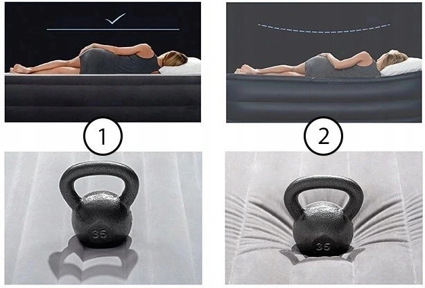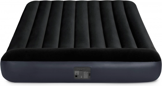 Ce lit gonflable double INTEX, d’une élégante couleur foncée, convient aussi bien à l’intérieur qu’à la maison de vacances. La surface supérieure en velours est agréable au toucher et antidérapante, tandis que les renforts internes Dura‑Beam Fiber assurent fermeté et répartition homogène du poids pour un sommeil sain.