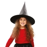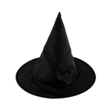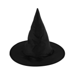 Ce chapeau de sorcier a une forme pointue traditionnelle et un large bord, ce qui en fait un accessoire authentique pour un costume.