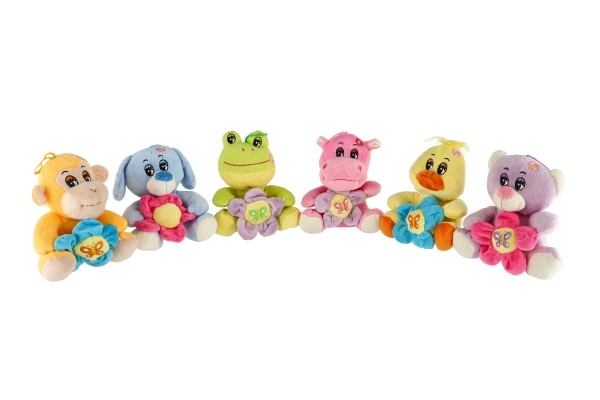 Singe, chien, grenouille, hippopotame, caneton ou ourson – chacun tient une petite fleur colorée avec un motif de papillon pour encore plus de plaisir de jeu.