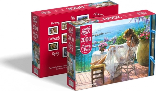 Découvrez le charme d’un moment paisible au bord de la mer. Le puzzle CHERRY PAZZI présente une scène artistique délicate d’une femme se reposant sur une terrasse avec vue sur l’océan. Avec 2000 pièces soigneusement découpées, il est idéal pour les amateurs de défis plus exigeants et de beaux motifs décoratifs.