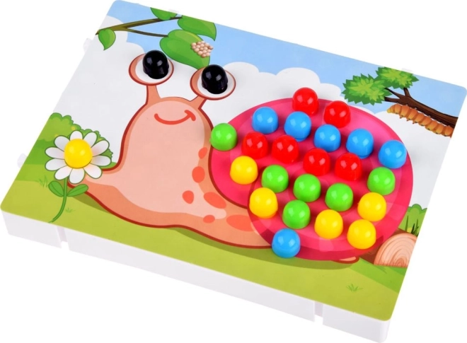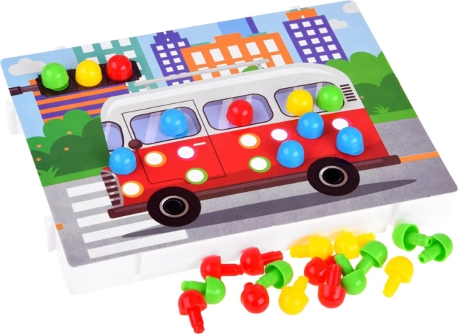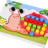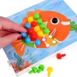Cette mosaïque avec chevilles, à la fois ludique et pratique, développe chez les plus petits la motricité fine, la coordination œil–main, la reconnaissance des couleurs et des formes ainsi que la créativité. Les enfants insèrent des chevilles colorées dans les trous selon des modèles et créent de jolies images – un jeu simple et captivant qui favorise la concentration et la patience.