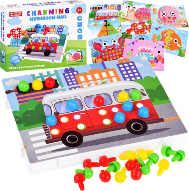 Cette mosaïque éducative colorée avec chevilles offrira des heures de créativité aux enfants. Une base en plastique robuste et des cartes illustrées percées guident pas à pas les petits créateurs – il suffit d’associer les chevilles aux bonnes couleurs pour donner vie à l’image. Le jeu entraîne naturellement la motricité fine des doigts, la pensée logique et la coordination œil–main.