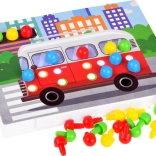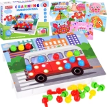 - 8 modèles en carton avec images, base en plastique, 90 chevilles colorées (rouges, jaunes, bleues, vertes, noires)