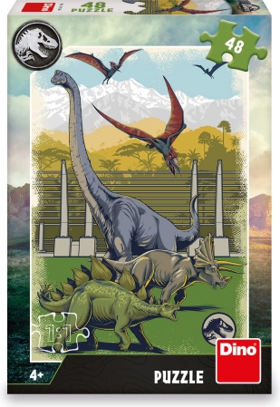Puzzle pour enfants Monde Jurassique avec 48 pièces. Fabrication tchèque de qualité en carton robuste, idéal dès 4 ans. Amusement et développement des compétences.