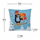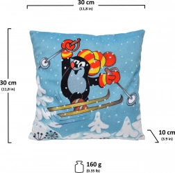 Ce coussin est fabriqué en microvelours, garantissant douceur et confort. Le devant présente une impression de la Petite Taupe, un héros toujours apprécié des enfants. Le dos est de couleur bleu clair, qui complétera à merveille toute chambre d’enfant.