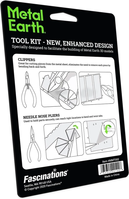 Ce set de pinces est l’accessoire idéal pour tous les passionnés des modèles METAL EARTH et autres kits 3D métalliques. La combinaison des pinces coupantes et des pinces à bec effilé vous permet de détacher les pièces des plaques métalliques avec précision et sécurité, et de les façonner confortablement lors du montage.