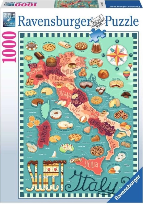 Découvrez le charme de l’Italie en version gourmande avec le puzzle RAVENSBURGER de haute qualité. Ce puzzle finement illustré au motif « Carte sucrée d’Italie » offre 1000 pièces, des découpes précises et une surface mate pour un assemblage confortable. Idéal pour les amateurs de voyages, de gastronomie et de détente avec des puzzles.