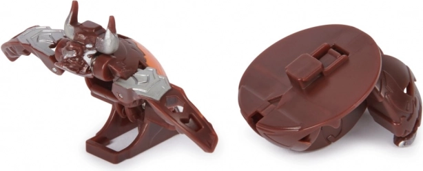Un Bakugan brun avec des détails argentés qui s’ouvre en mode combat lorsqu’il passe sur une carte Portail – une transformation iconique comme dans la série.