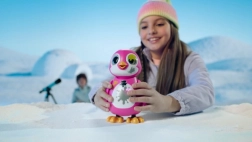 Ce manchot interactif bleu offre aux enfants une expérience unique de soin et de jeu. À l’aide du chiffon magique, nettoyez-le pour déverrouiller ses fonctions lumineuses et sonores. Son cœur clignotant change de couleur selon ses émotions – lorsqu’il est heureux, fatigué, gelé ou affamé, il vous le fait savoir.