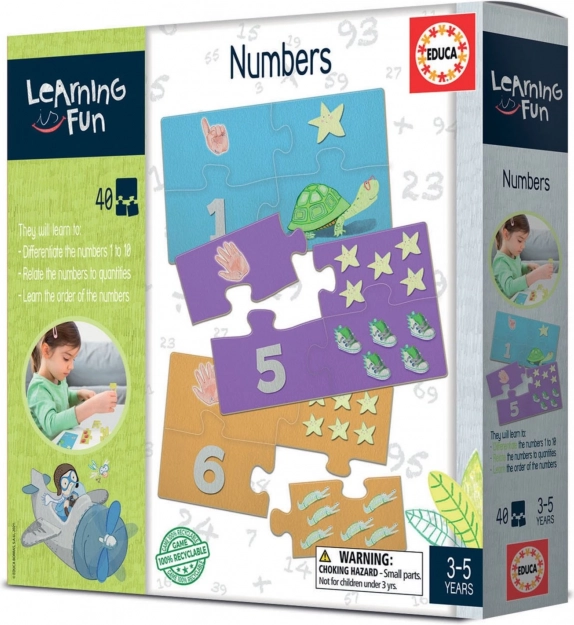 Découvrez une approche ludique des mathématiques avec la gamme EDUCA Learning is Fun. Cet ensemble familiarise les enfants avec les chiffres 1–10, leur apprend les premiers calculs et relie le chiffre, le nombre d’images et les doigts. Chaque chiffre correspond à 4 pièces de puzzle, qui développent la motricité fine, la pensée logique et la patience. De plus, le produit est 100 % recyclable.