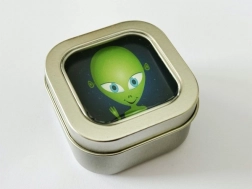 - Boîte en métal 6 × 6 × 4 cm – emballage sûr et facile à ranger