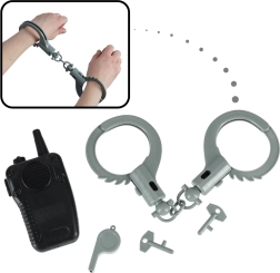 L'ensemble comprend des accessoires qui ajoutent une dimension supplémentaire au jeu, comme un sifflet, des menottes, et une radio à ondes courtes. Fabriqué en matériaux résistants et faciles à nettoyer pour des jeux sans souci.