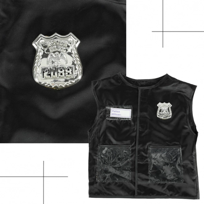 Le gilet a des poches transparentes, un insigne argenté et un écusson 'Police Officer', permettant aux enfants de se sentir comme un véritable policier.