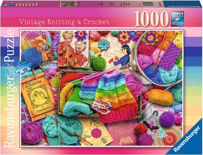 Découvrez un puzzle de qualité au motif de tricot et de crochet vintage de la marque RAVENSBURGER. Mille pièces offrent des pièces précises avec un emboîtement parfait, un superbe style rétro et une image finale d’environ 70 × 50 cm – idéal pour se détendre et comme décoration une fois terminé.