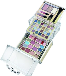 Élégante mallette cosmétique au luxueux fini doré, elle offre tout ce dont vous avez besoin pour un maquillage quotidien comme pour les occasions spéciales. Elle contient au total 64 pièces d’accessoires, une large palette de fards à paupières, de rouges à lèvres et de pinceaux de maquillage. Le design compact en acrylique est résistant et bien organisé. Le produit est testé dermatologiquement et conforme aux normes strictes de l’UE.