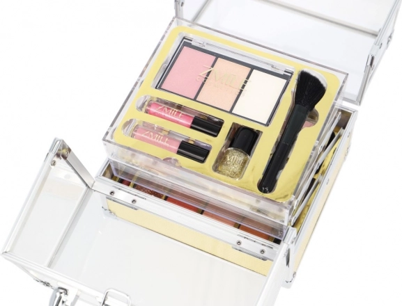 Découvrez la mallette cosmétique universelle GLAM au design acrylique doré, proposant une riche palette de teintes pour les yeux, les lèvres et le corps. Grâce à une disposition astucieuse et à des applicateurs pratiques, réalisez aisément un maquillage naturel de jour comme un look de soirée prononcé.