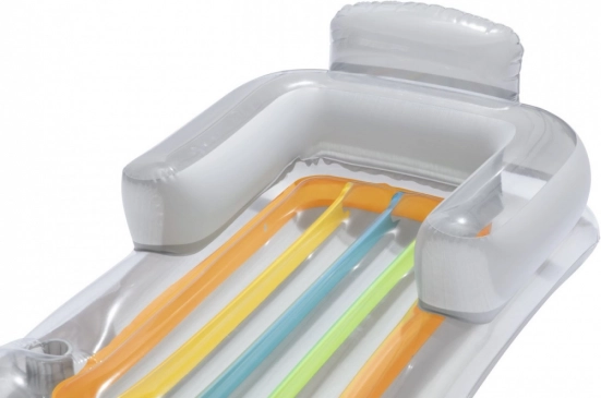 Le matelas est équipé d’un dossier et d’accoudoirs pour un meilleur confort pendant la détente.