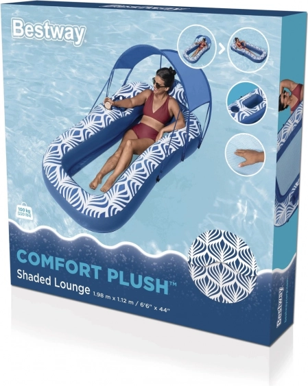 Profitez de la détente sur l'eau avec le matelas gonflable Bestway équipé d'un fond en maille chromé, d'un baldaquin intégré qui protège du soleil et d'un coussin rembourré pour un confort maximal.