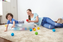 Le set comprend 50 balles multicolores, 4 jouets supplémentaires et une rustine autocollante pour une réparation rapide. Légère, facile à transporter et rapidement prête à l’emploi – parfaite pour le salon, la chambre d’enfant et le jardin.