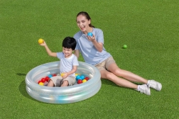 La piscine gonflable 2 en 1 universelle de la marque BESTWAY sert à la fois de pataugeoire et de piscine à balles. Dimensions compactes 91 × 20 cm, 50 balles colorées incluses, vinyle résistant et valves de sécurité pour un jeu sûr et amusant à la maison comme au jardin.