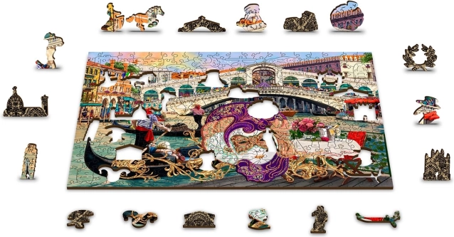 Découvrez la magie de Venise avec le puzzle en bois premium 2 en 1 de WOODEN CITY. Ce puzzle recto-verso aux pièces de forme unique offre un défi accru et une expérience d’assemblage exceptionnelle. Grâce à la précision laser, chaque pièce possède des bords lisses sans échardes et certaines prennent la forme d’animaux, de bâtiments ou d’objets. Le puzzle est en outre ÉCO – 100 % sans plastique et constitue un cadeau original.