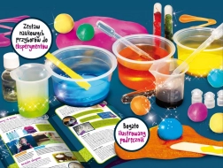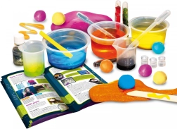 Un kit de construction à la fois fascinant et un peu brut avec lequel les enfants créent, à partir d’une matière collante, des objets amusants et créatifs, notamment des balles rebondissantes, des cellules de petits monstres, du sable mouvant, une gelée extensible ou une pâte à modeler rigolote. Le produit contient des agents sûrs. Avertissement : Les pâtes changent de couleur et rebondissent ! Contenu : lunettes de protection, pipette, spatule, réactifs, colorants, doseurs, bouteille, éprouvettes.