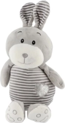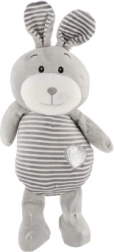Ce lapin gris à rayures, avec de jolis détails et un petit cœur sur le ventre, apporte aux enfants un sentiment de sécurité et de confort. Il est fabriqué dans une matière agréable et toute douce qui invite aux câlins et convient même aux tout-petits.