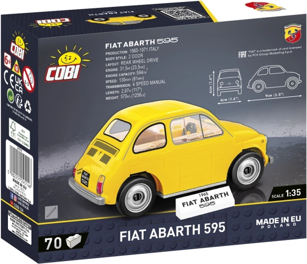 Découvrez la légendaire Fiat ABARTH 595 à l’échelle 1:35 sous forme de jeu de construction COBI de qualité. Le modèle reproduit fidèlement les lignes iconiques de cette voiture classique et offre des impressions durables sans autocollants, des roues rotatives avec pneus et un design précis pour le jeu comme pour l’exposition de collection.