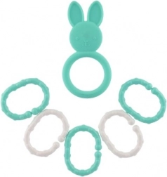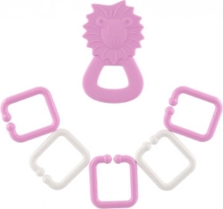 Ce set léger et facile à saisir combine un anneau de dentition en silicone en forme d’animal avec plusieurs anneaux en plastique pouvant être reliés entre eux. Les différentes textures et formes stimulent le toucher, la vue et l’ouïe, tout en apportant un soulagement aux gencives sensibles lors de la poussée des dents.