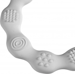 Pratique anneau de dentition en silicone de forme circulaire, en coloris blanc, qui aide à apaiser les gencives irritées lors de la poussée dentaire. Grâce à sa forme ergonomique, bébé l’attrape facilement et les reliefs en surface offrent une douce massage des gencives et une stimulation sensorielle.