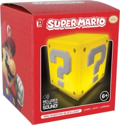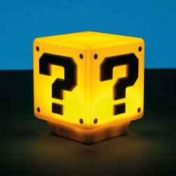 Élégante lampe de table en forme du bloc point d’interrogation iconique de la série de jeux Super Mario. Lorsqu’elle est allumée, elle produit des effets sonores authentiques qui apportent la nostalgie et l’atmosphère de l’univers de Mario.