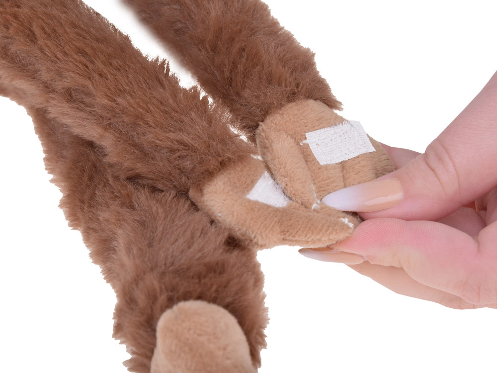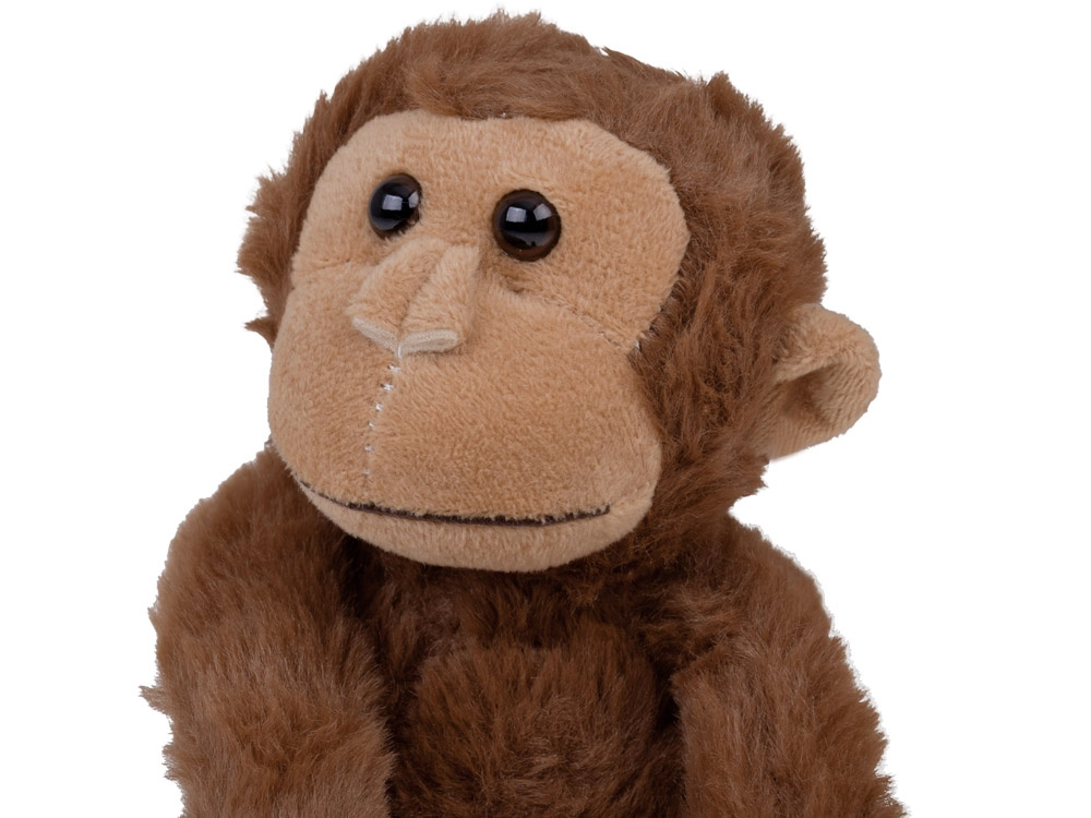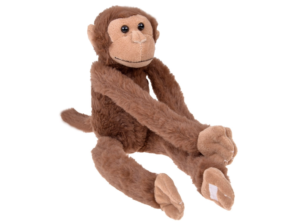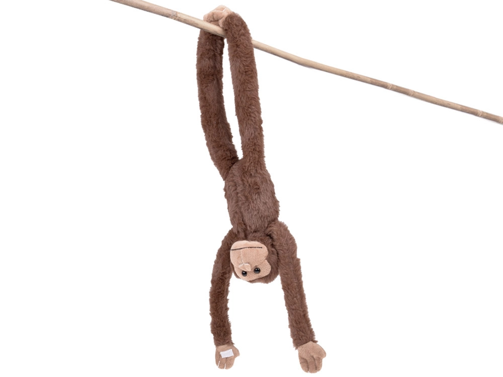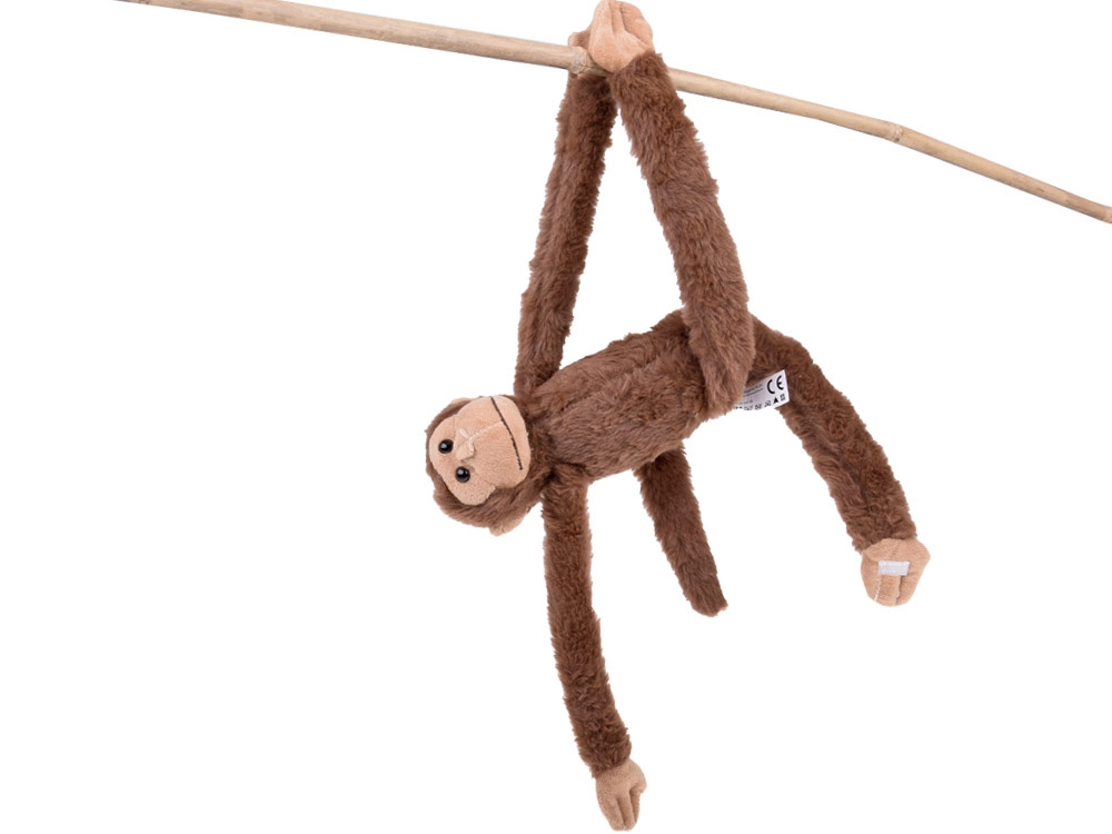 Grâce aux bandes intégrées sur les pattes, vous pouvez facilement suspendre le singe et le positionner de différentes façons – au lit d’enfant, à une chaise ou au sac à dos.