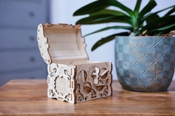 Transformez l’art d’offrir en aventure. Cette élégante boîte en bois aux fines découpes et détails décoratifs fait office de casse-tête mécanique – le destinataire doit trouver la bonne procédure pour accéder à la surprise cachée. Grâce à sa fabrication de qualité, la boîte est non seulement fonctionnelle, mais aussi un objet décoratif pour votre intérieur.