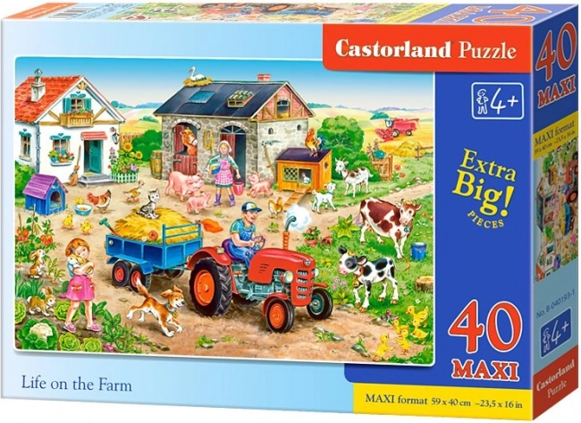 De grands puzzles colorés sur le thème de la vie à la ferme raviront les petits constructeurs. Le set contient 40 pièces MAXI et, une fois assemblé, forme une image de 59 × 40 cm. Idéal pour les enfants dès 4 ans – les grandes pièces se tiennent bien en main et la qualité CASTORLAND garantit durabilité et sécurité.