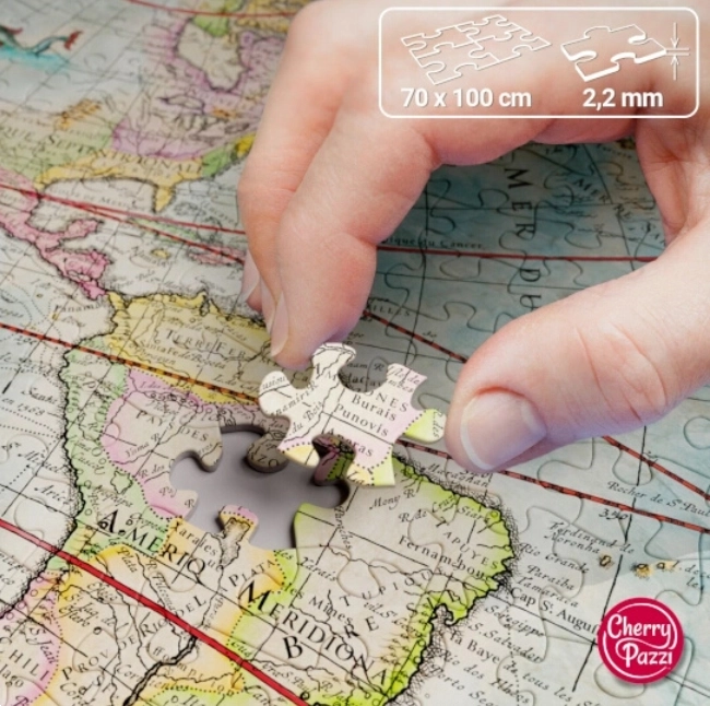 Plongez dans l'époque des grandes expéditions maritimes et assemblez une carte du monde détaillée. Ce grand puzzle CHERRY PAZZI de 2000 pièces offre une impression précise et des détails fins qui raviront tout amateur d'histoire et de géographie. Une fois assemblé, vous obtiendrez une image impressionnante de env. 100 × 70 cm, idéale à exposer.