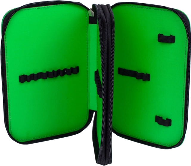 Gardez vos fournitures scolaires en ordre avec cette trousse à deux étages inspirée de l’univers Minecraft. Grâce à ses deux compartiments zippés séparés, vous pouvez facilement trier crayons, stylos, surligneurs et règle. Le matériau résistant et les fermetures éclair de qualité garantissent une longue durée de vie au quotidien.