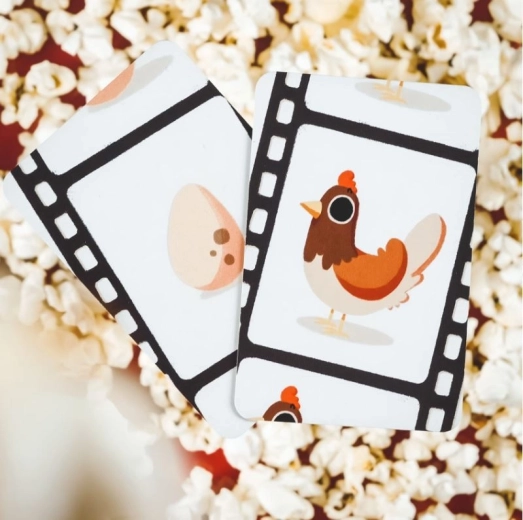 Dans la version de base, 3 cartes sont disponibles : Œuf, Poule et Renard. Un joueur endosse le rôle de réalisateur et pose progressivement les cartes (qui sont des plans du film) les unes sur les autres. La tâche des autres joueurs est de suivre attentivement le film et de couper lorsque 5 Œufs apparaissent dans le film. Mais attention ! Si une Poule apparaît dans un film où il y a déjà un Œuf, elle s’assoit sur l’Œuf et celui-ci cesse d’apparaître. Si un Renard arrive alors que la Poule est assise sur l’Œuf, le Renard enlève la Poule et l’Œuf réapparaît à l’écran ! En plus, le scénario peut être chamboulé par l’agriculteur Wiesiek, le coq Rococo, le chien Frondzel et d’autres.