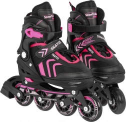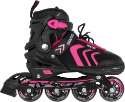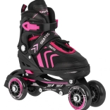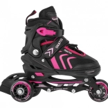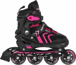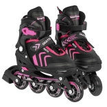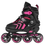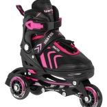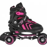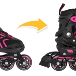 Ensemble enfant universel 4-en-1 combinant patins inline, patins quads et patins à glace en un seul produit. Grâce à la régulation de taille à 5 niveaux 29–33, au rembourrage confortable en mousse EVA souple, à la ventilation et à la fermeture sûre par lacets + sangle velcro + boucle, il offre sécurité et confort. Le châssis en aluminium, les roulements ABEC 7 et les roues PU 64 mm (85A) garantissent une glisse fluide, tandis que la lame inox assure l’adhérence sur la glace.
