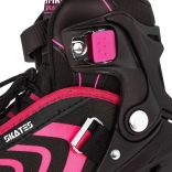Ce pratique ensemble 4-en-1 grandit avec l’enfant et lui permet de patiner toute l’année – dehors sur l’asphalte ou en salle, ainsi qu’en hiver sur la glace. Grâce au réglage de taille à 5 niveaux (29–33), les bottines s’adaptent facilement à une longueur de pied de 16,5–20 cm. La construction semi-rigide protège la cheville, tandis que la membrane semi-perméable et le système de ventilation maintiennent un climat agréable à l’intérieur de la chaussure.